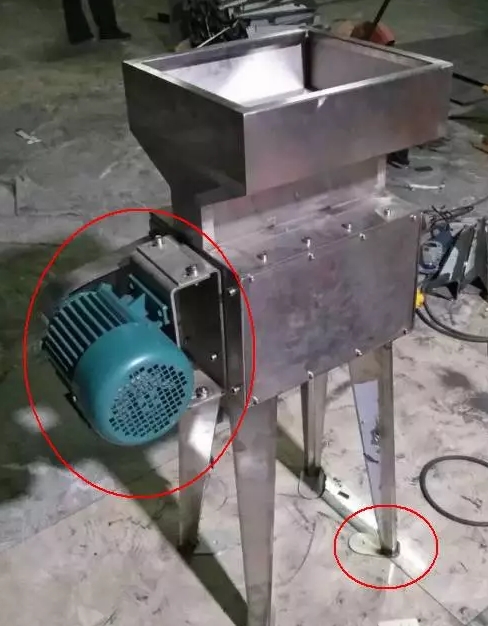 對(duì)輥粉碎機(jī)均為皮帶傳動(dòng),使用一段時(shí)間之后,皮帶可能會(huì)松動(dòng),此時(shí)需要對(duì)皮帶進(jìn)行張緊,因此,電機(jī)罩必須能夠非常方便的拆卸。